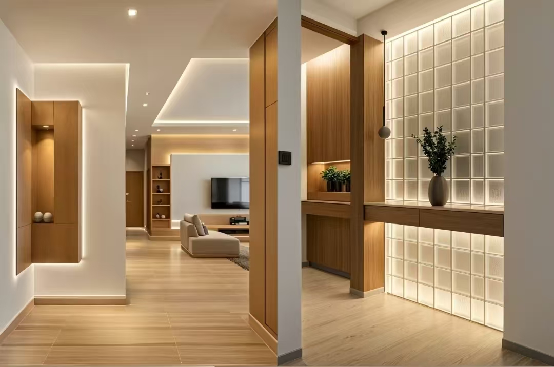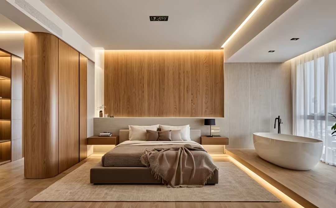 Drewniane wykończenia zapewniają delikatny dotyk, łącząc ciepłe i chłodne tony.
